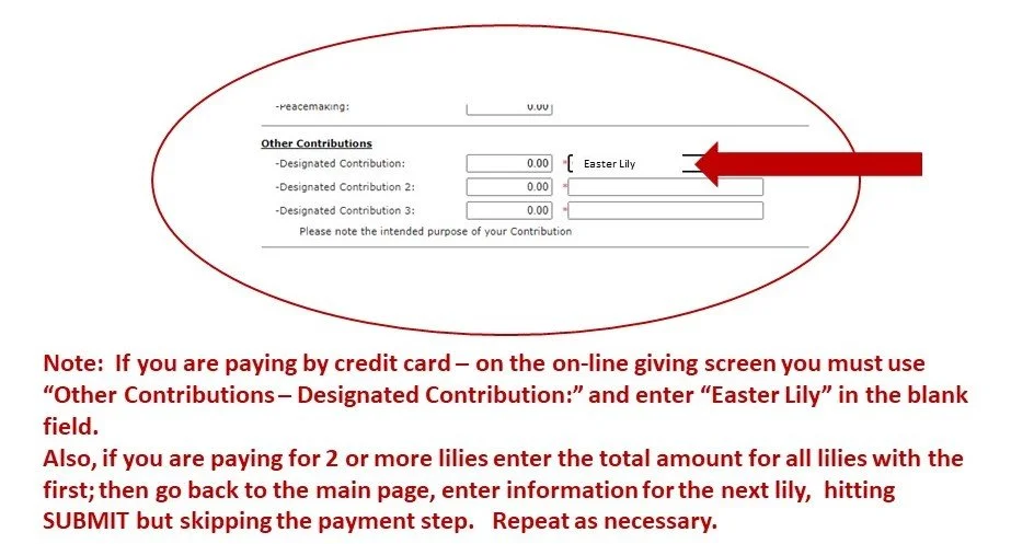 Each lily dedication is $10.00. Please send in dedications and payment by mail and online before March 30.